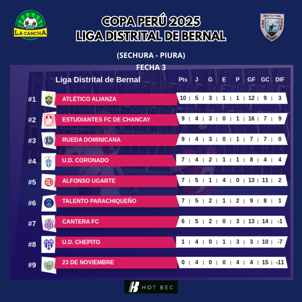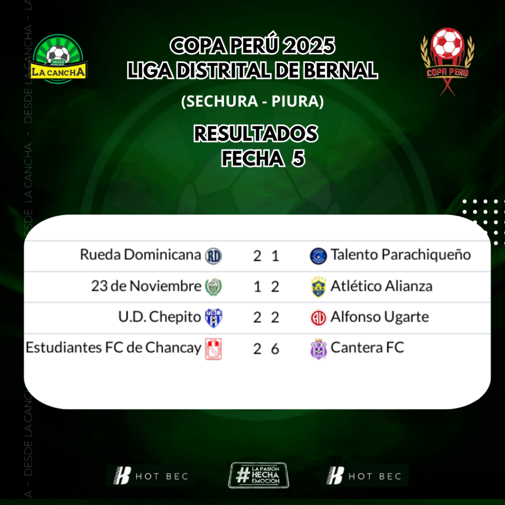 Se jugó la quinta fecha de la Liga Distrital de Bernal en Sullana que dejó como único líder a Atlético Alianza.