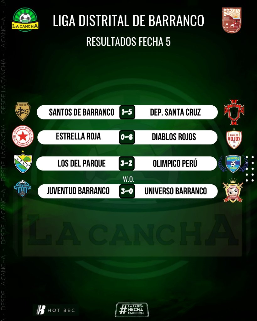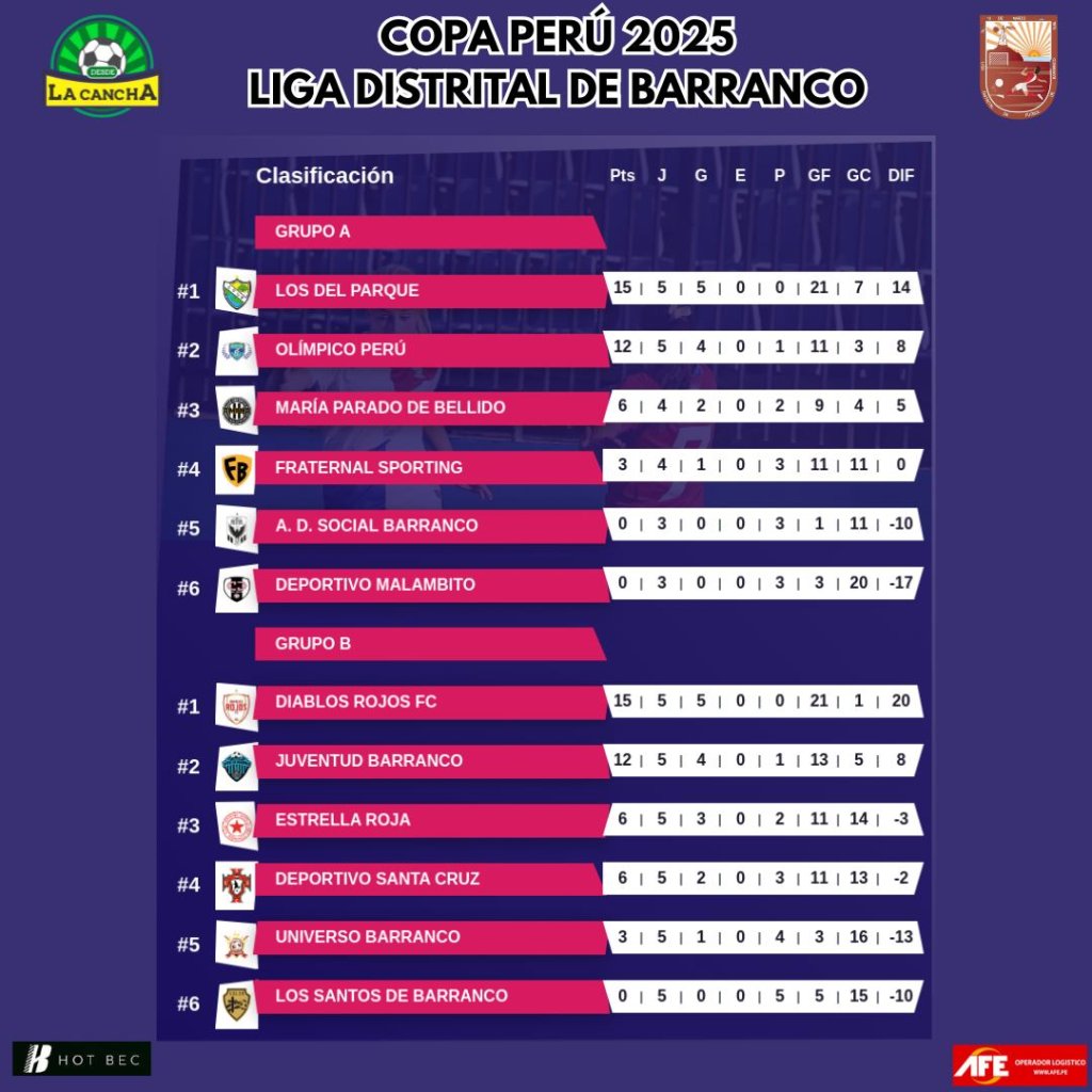 El conjunto de Club Deportivo Los del Parque(Barranco) venció por un marcador de 3-2 a Olímpico Perú y se quedó con el 1er lugar del Grupo A de la Liga Distrital de Fútbol de Barranco – Oficial, asegurando su pase al Interligas 2025.