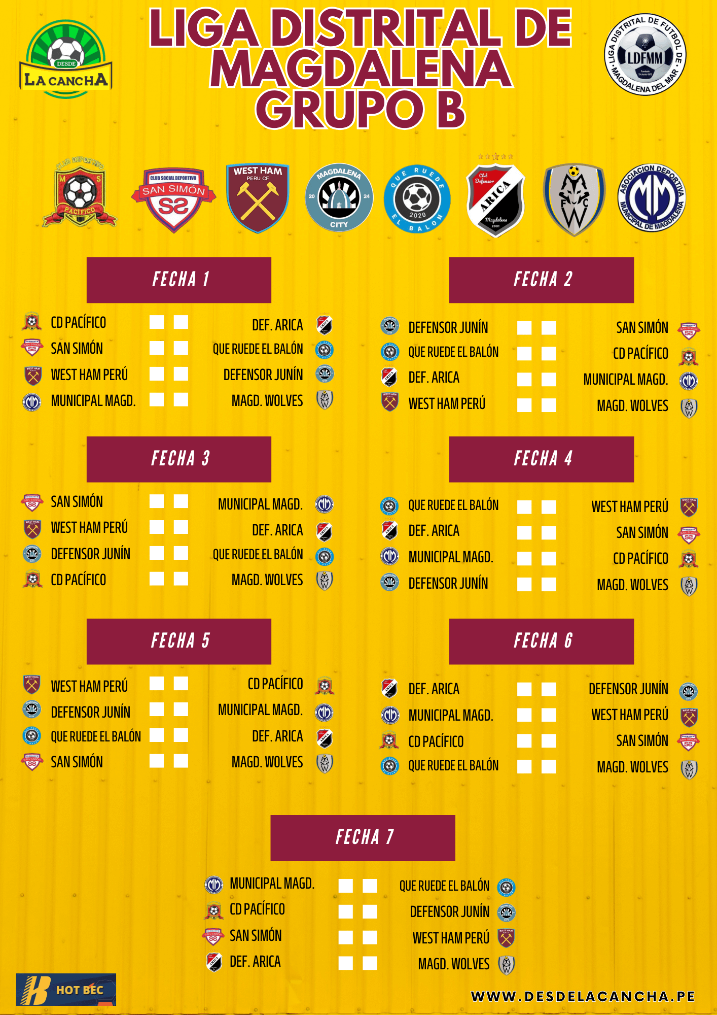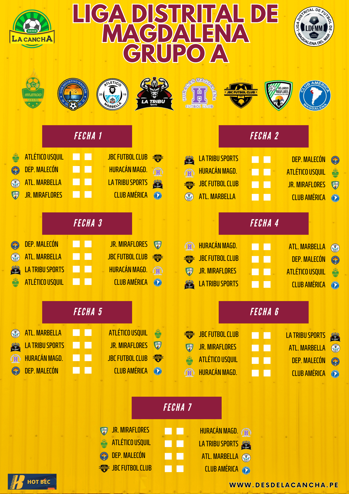 Desde La Cancha te comparte el fixture completo de la Liga Distrital de Magdalena.