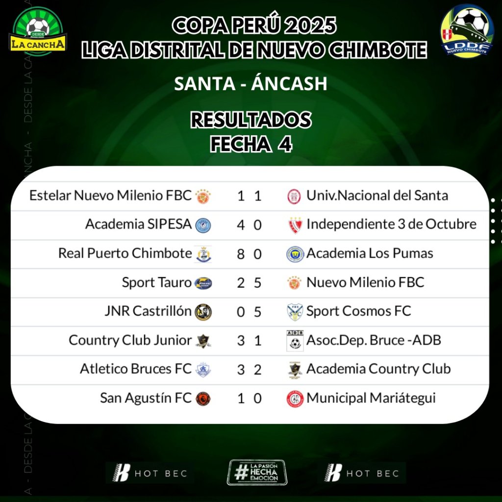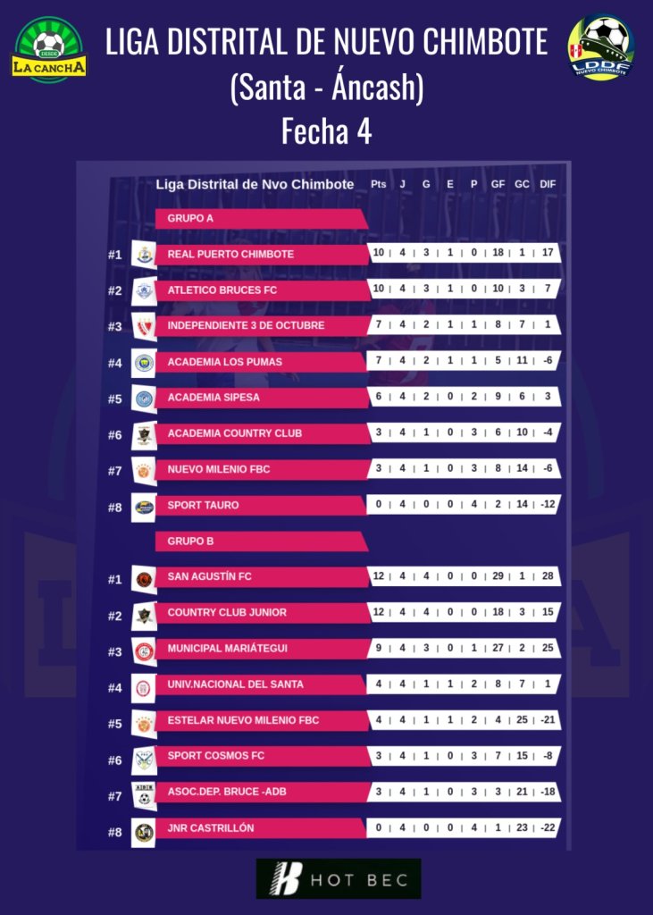 La Liga Distrital de Nuevo Chimbote llegó a la cuarta fecha y el liderato se torna cada vez más disputado.