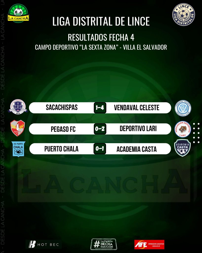 Se jugó la 4ta fecha de la Liga Distrital de Lince, que nos dejó los siguientes resultados.