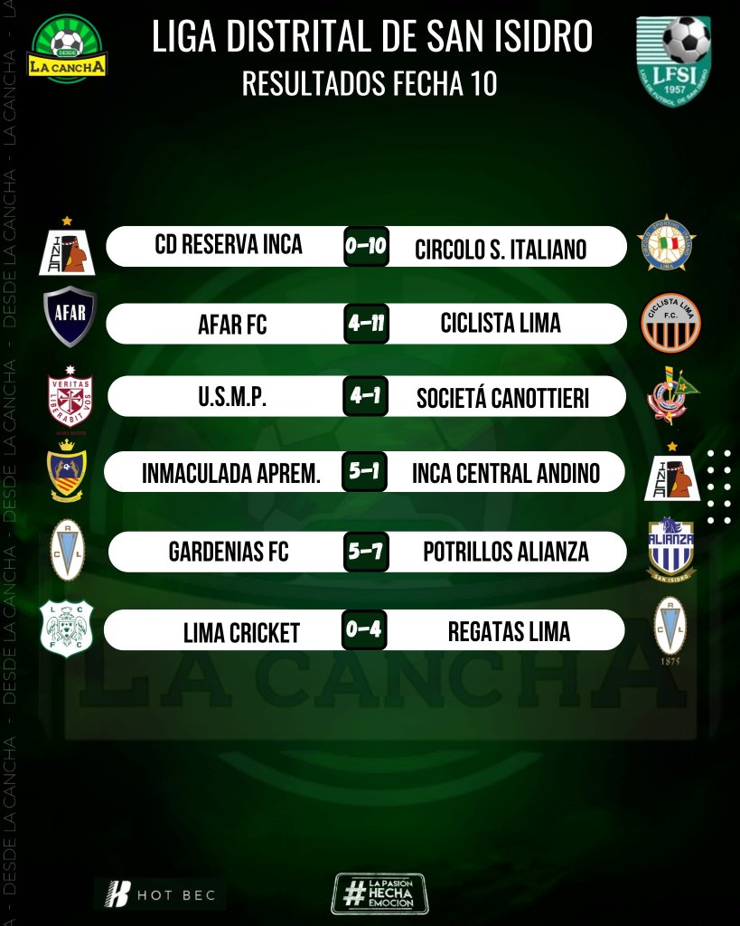 Se jugó la penúltima fecha de la Liga de Fútbol de San Isidro, donde 4 equipos mantienen las chances de ir al Interligas 2025.