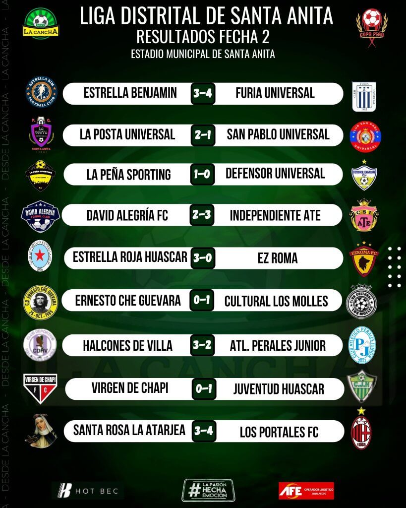 Se jugó la 2da fecha de la Liga Distrital de Santa Anita, donde nos dejaron los siguientes resultados.