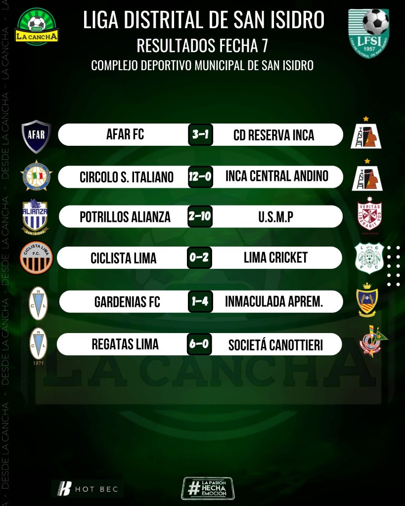 U.S.M.P. sigue líder en la Liga de Fútbol de San Isidro pero Club de Regatas Lima y C.D. Inmaculada lo siguen de cerca.