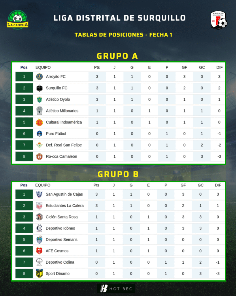 Atención a los resultados de la primera fecha y la tabla de posiciones.