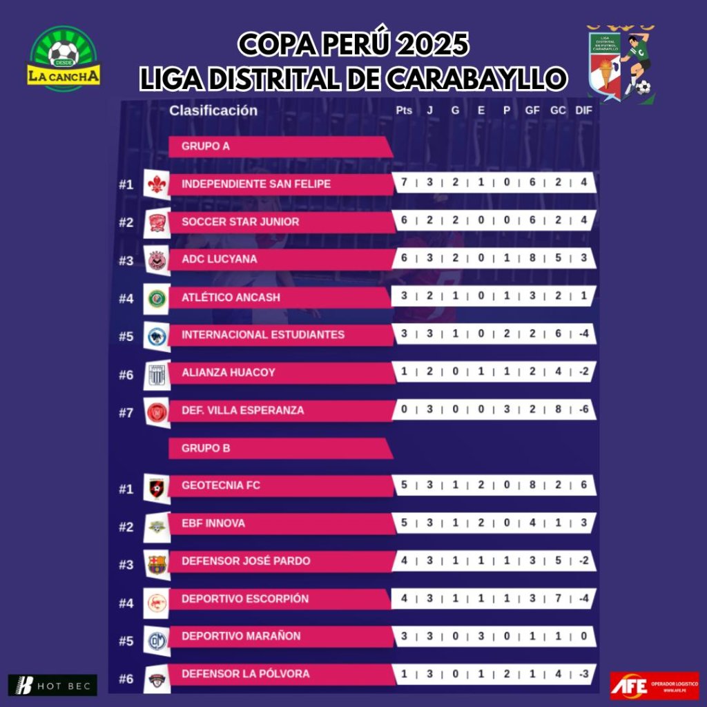 La Liga Distrital de Carabayllo cumplió su tercera fecha en el Campo Deportivo El Coloso. Cabe indicar que este torneo cambiará de escenario ya que se trasladará al estadio Ricardo Palma.
